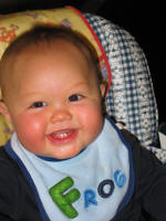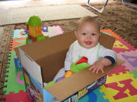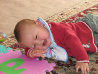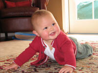 At 9mos, Jordan started crawling forward. Up til now, he would rock back & forth on his hands & knees and crawl backwards. |
