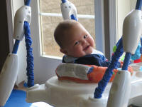 The Jumperoo is one of Jordan's favorite toys. Here we have it facing out the french doors in the family room where Jordan can watch the birds while jumping. |